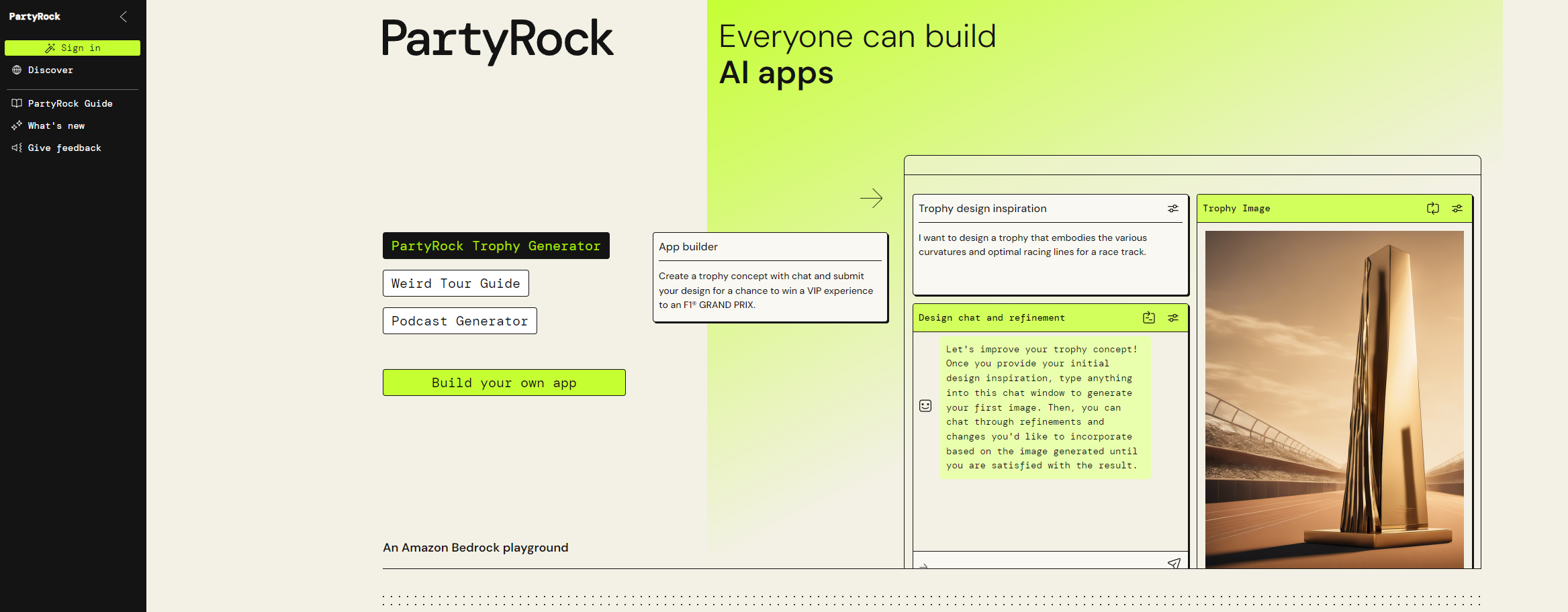 Amazon Web Services 에서 PartyRock 이라는 서비스를 제공한다.