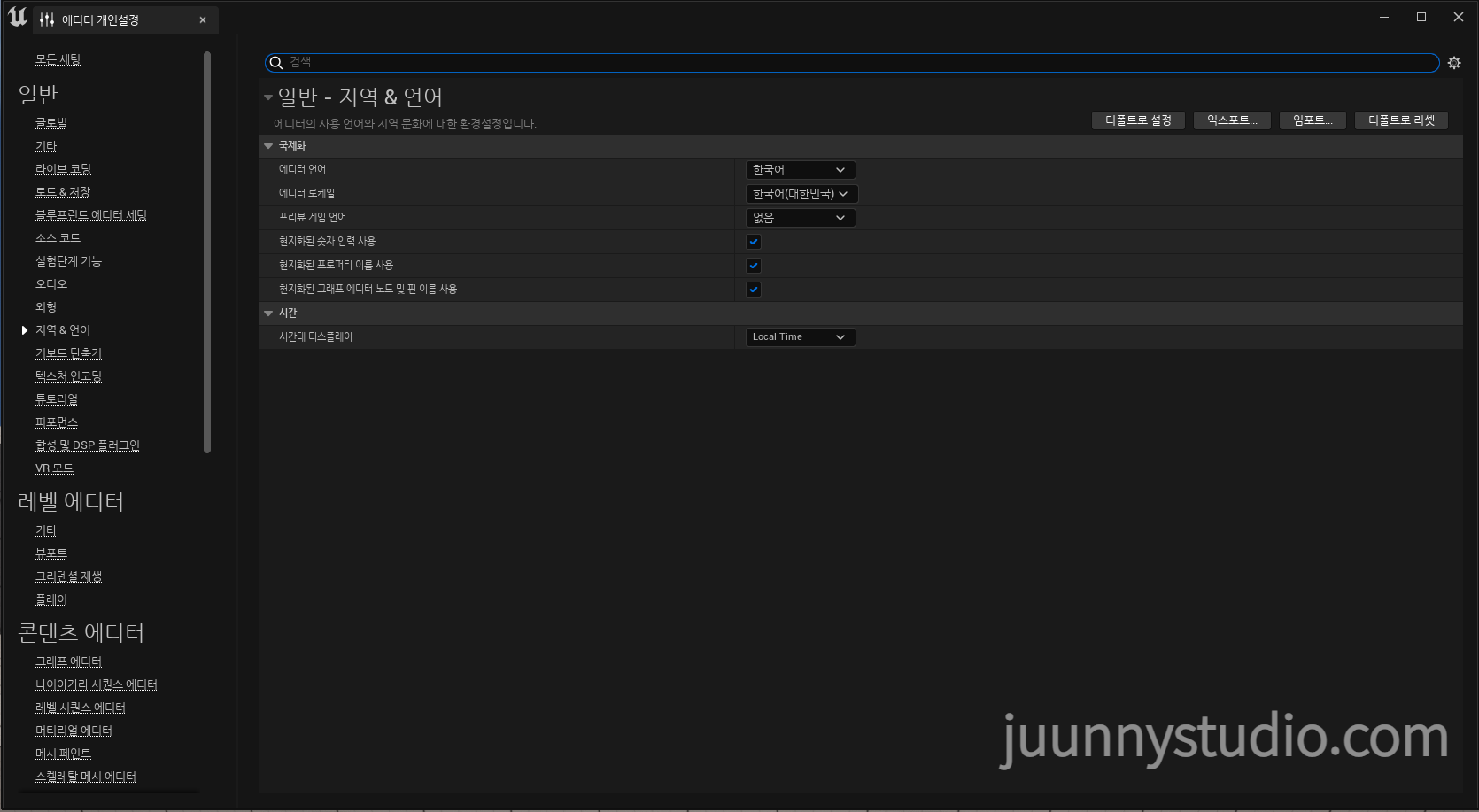 언리얼 엔진5 에디터 사용 언어 설정(한국어/영어)하기