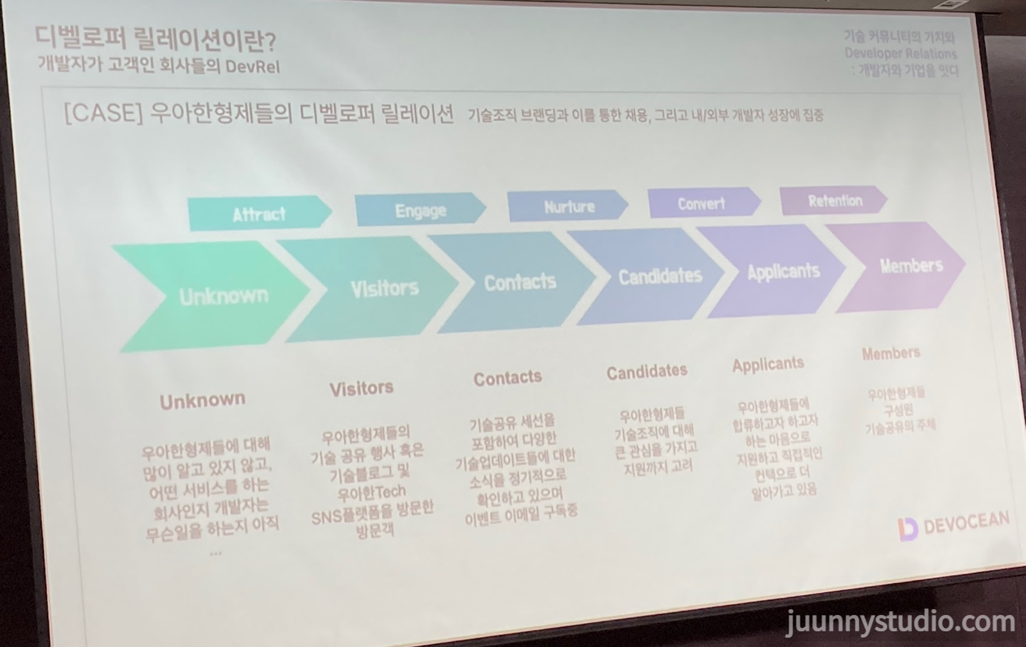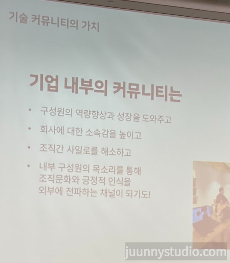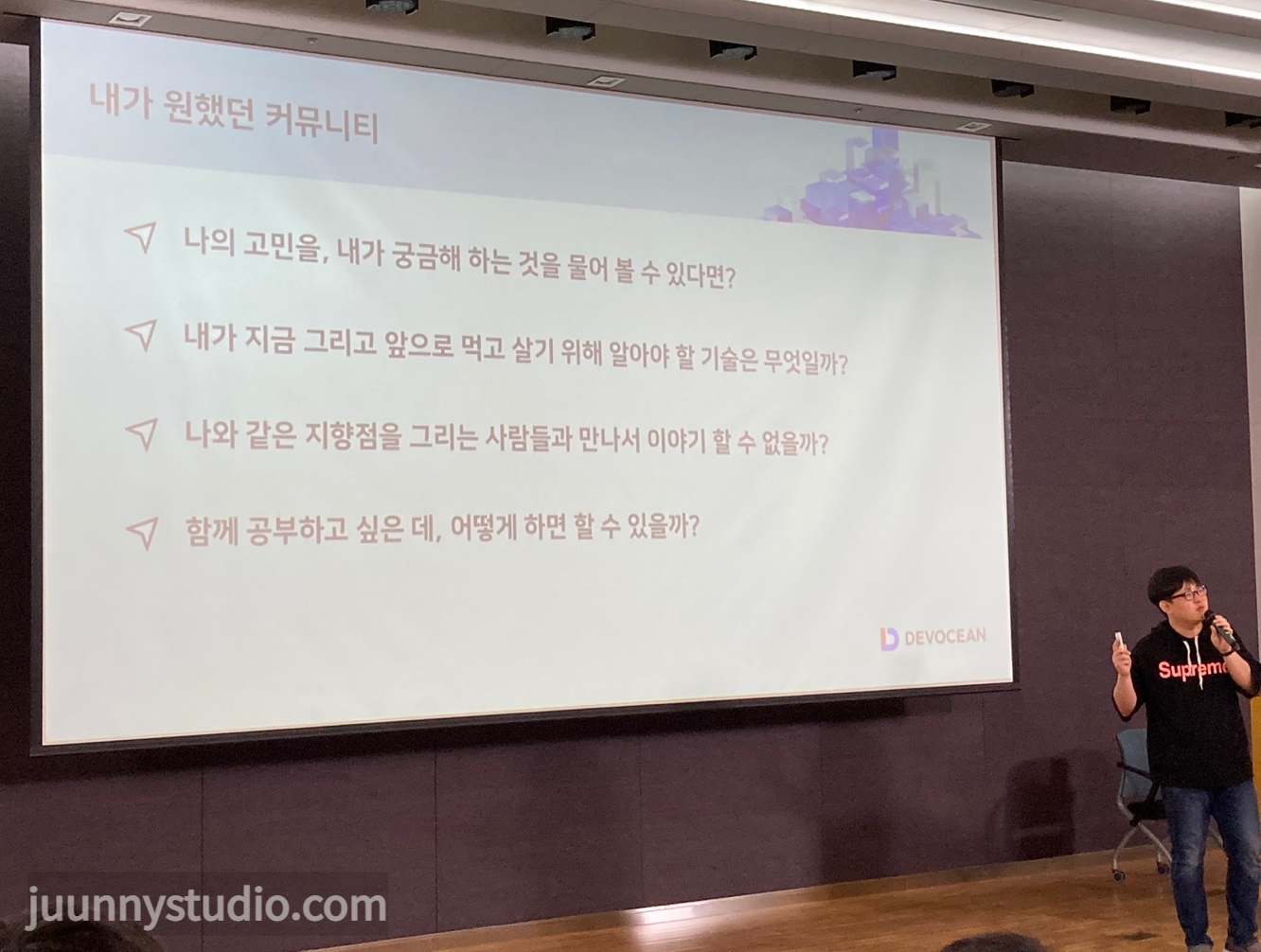 이 후부터는 실제 개발 커뮤니티를 운영하고 있는 운영자들의 개발 이야기와 커뮤니티 형성과 성장 이야기를 들을 수 있는 시간이 이어졌다.