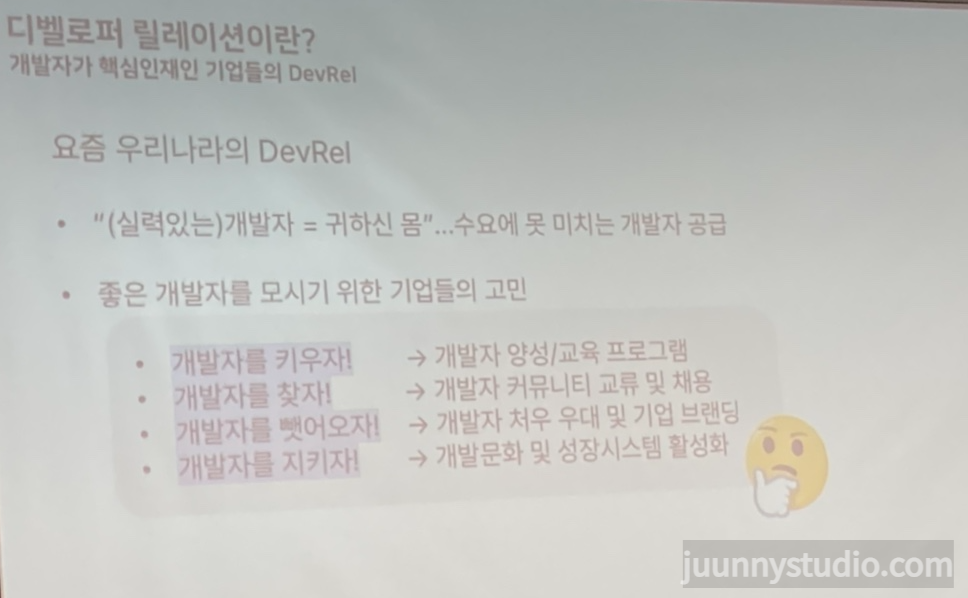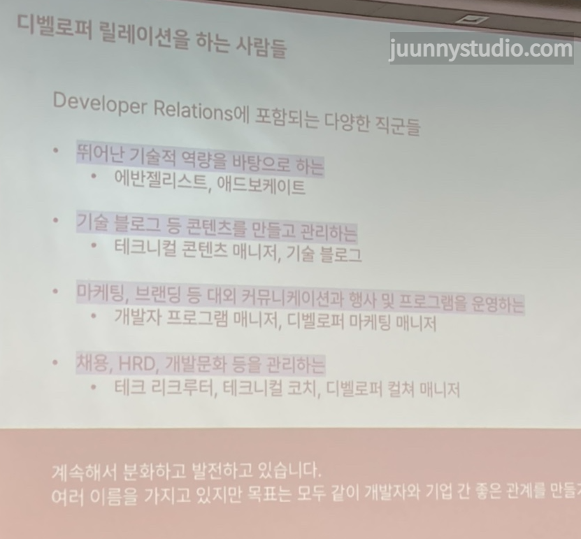 DevRel에 대한 개념을 확립하는 시간이었다고 말해도 과언이 아닌 시간. 새롭게 등장한 개념이고, 개발자가 일하는 기업과 플랫폼 기업에서 주목하고 있는 분야이기도 하다. 커뮤니케이션은 기업의 성장에 있어 상대가 누가 되었든 중요하다.