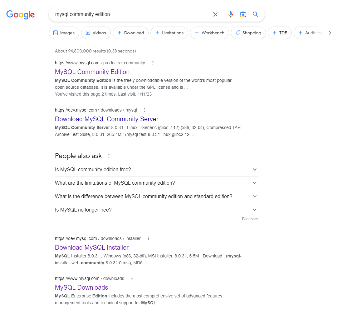 먼저 구글에 MYSQL 중 커뮤니티 에디션을 검색한다. 이게 무료다.