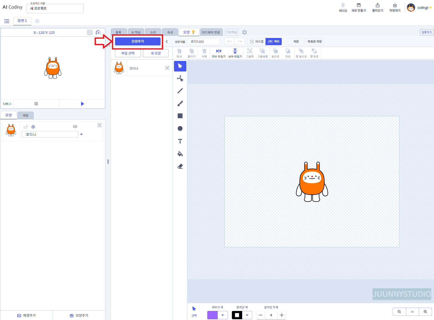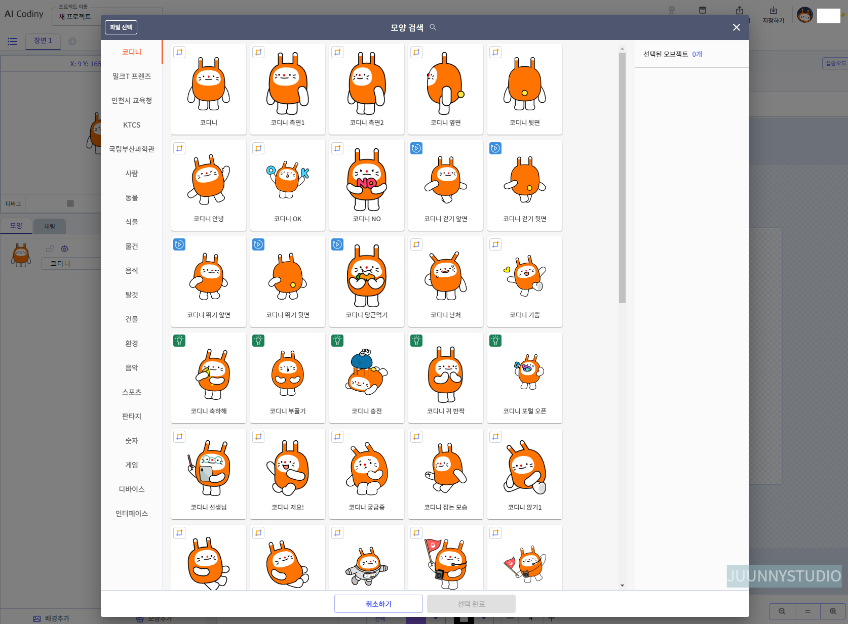 여기서, 오브젝트는 빨간 동그라미 안의 이 친구예요. 이름은 '코디니'.