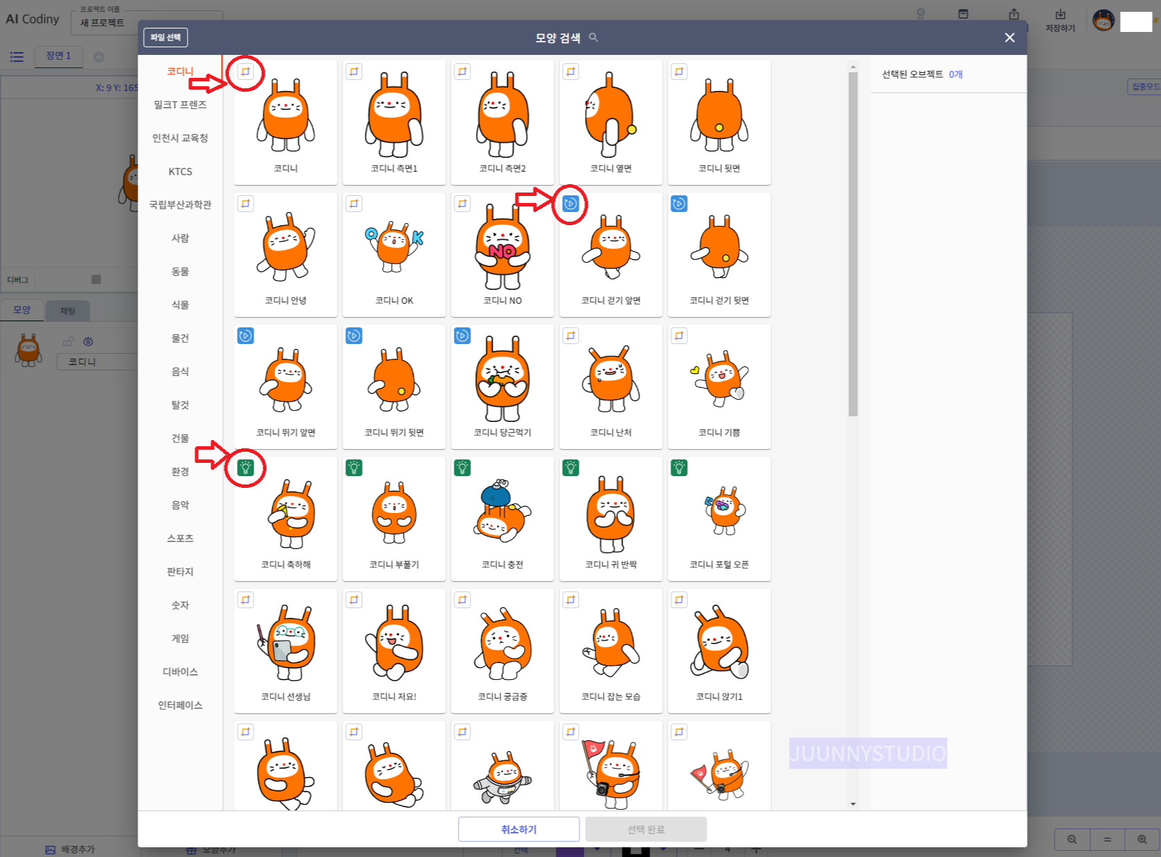 오브젝트 왼쪽 상단에 아이콘이 있습니다. 각각 어떤 걸 의미하는지 알아볼까요?